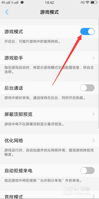 默认是将游戏模式封闭的,点击右侧的开关将其打开。