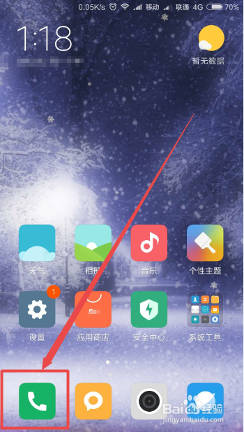 解锁之后,手机桌面上面的 拨号 图标。