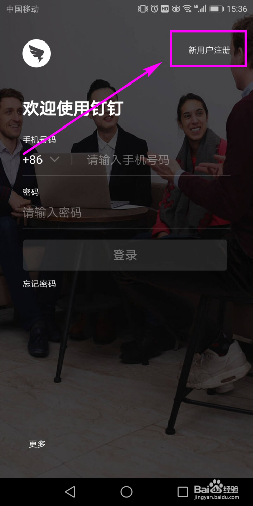 这时进入到钉钉的登录页面,在页面的右上角位置点击【新用户注册】。