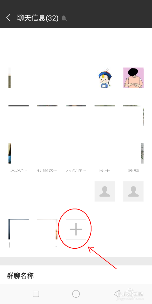 聊天信息里显示群里当作员,在最后一个当作员旁边有个”+“,并点击它。