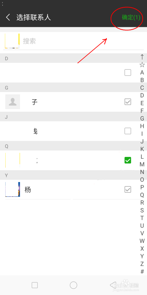 选择好联系人后就可以点击右上角的”确定“。(如下图)