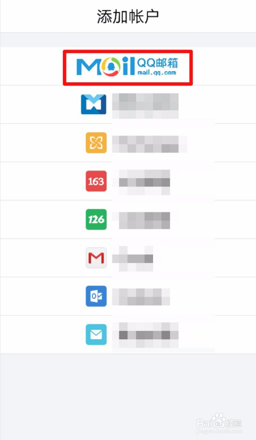 在这个【添加账户】的界面点击打开【QQ邮箱】这个选项。