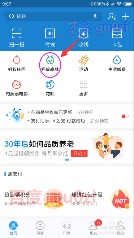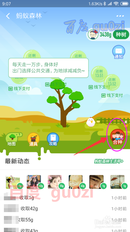 在付出宝中登录后,打开 蚂蚁丛林,并进入 合种,