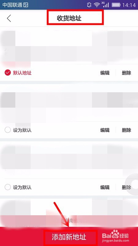 顿时可以看到收货地址页,我们选择点击该页下方的添加新地址字样的选区;