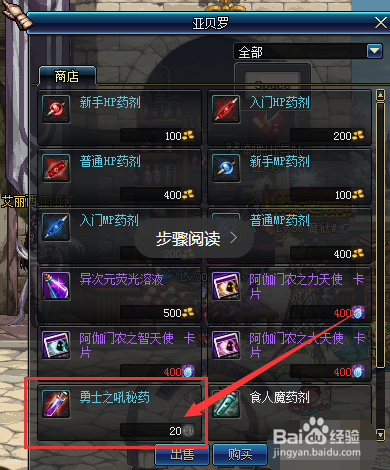 打开商铺采办勇士之吼秘药,每个20无色小晶块。