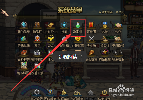 按Esc,或点击菜单,找到副职业。