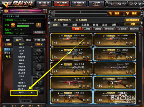 在仓库装备页面左侧点击——脚色,见下图标注处;