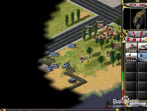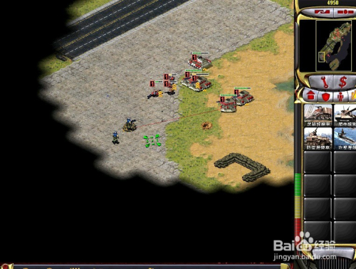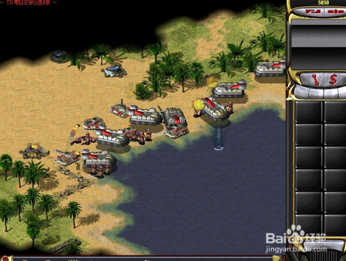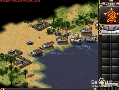 在陆处所面用开局给的军队,直接标的目的仇敌基地开进(注重:开局给的军队足够用来摧毁仇敌的基地了)