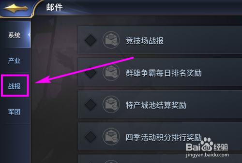 进入邮件页面后,在左侧的列表中选择【战报】,如图所示。