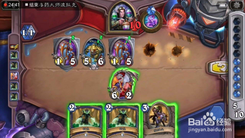 标的目的对方英雄利用一张“寒冰箭”卡牌—标的目的对方英雄利用一支“冰枪术”卡牌—最后用“法力浮龙”卡牌进犯对方英雄。