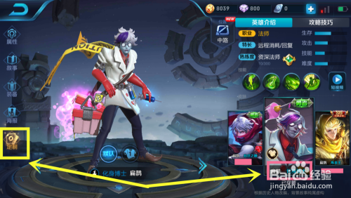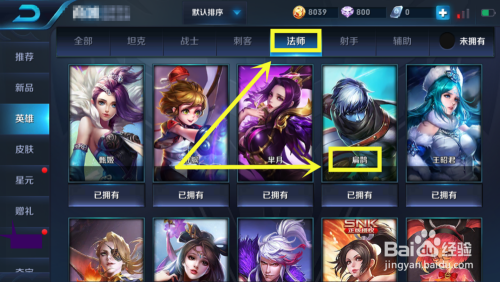 在我的英雄页面,点击进入法师-找到扁鹊这个英雄,查看英雄详情,如图所示