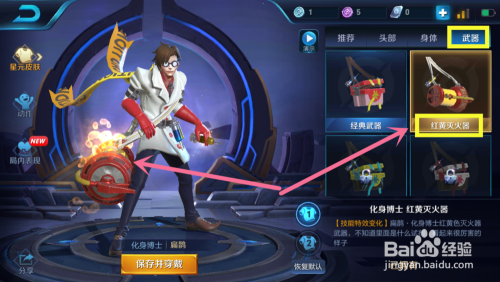 在兵器单品中,点击红黄灭火器可以穿戴新兵器式样,如图所示