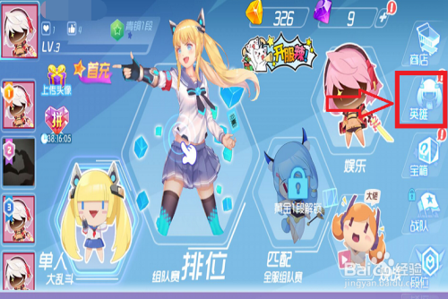 先点开此游作战前的界面框内,在右侧一列的标钮中,看到‘英雄’的字样,这是咱们已拥的,把它按开。