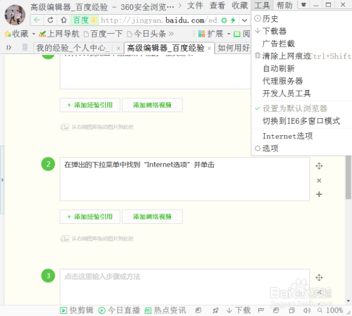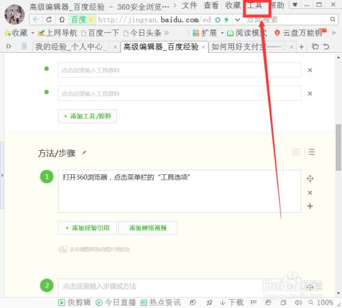 打开360浏览器,点击菜单栏的“东西选项”