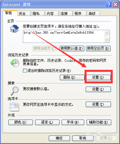 在Internet属性选项卡中,单击“常规”,找到浏览汗青记实