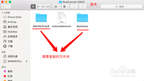 (2)在此之前Boot Camp已经将你的优盘给抹失落而且下载了bootcamp的相关软件(这些软件会在你的win7中利用)。下载完毕之后复制出文件夹里面的$WinPEDrivers$和BootCamp文件夹,拖进你的优盘里面进行笼盖替代。