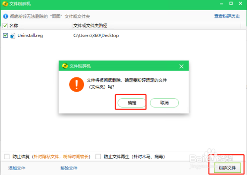 然后选择“破坏文件”,在提醒窗中单击“确认”即可,如下图: