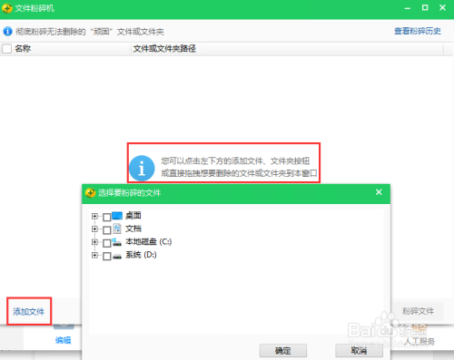 点击左下方的“添加文件”或直接拖拽想要删除的文件或文件夹到此窗口。