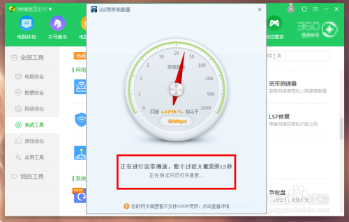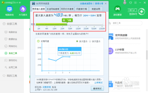本身家的网速比来有点慢,可是不知道怎么测试查询。其实可以用平安卫士来测速