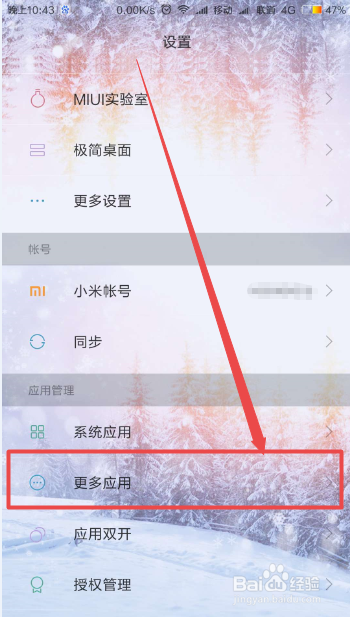 然后在打开的设置页面中找到 更多应用 选项,点击进去。