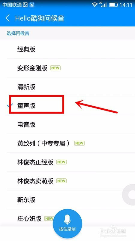 若是要改换当作童声版直接点击选择童声版即可当作功改换手机酷狗音乐问候语了。