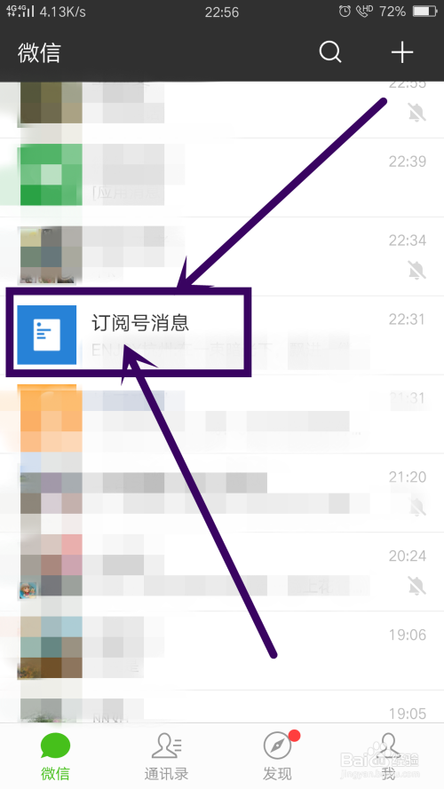 在微信首页中,点击进入订阅动静,如图所示