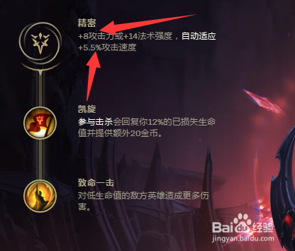 LOL8.17版本山公打野在副系符文选择上比力喜好带紧密系,增添攻速,提高清野能力。再点出团战比力给力的凯旋和致命一击。