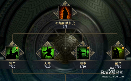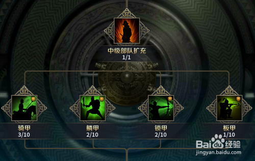 解锁中级军队则可以再次将步队数目扩充到3支,而进级骑甲、鳞甲、锁甲和板甲就可以晋升响应军种的根本防御能力。