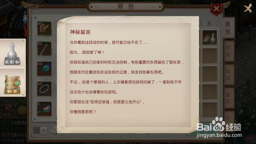 开启物品宝箱,获得纸条1和纸条2。纸条1文字是“WIFI密码是528439”,布景有恍惚的妙算子NPC图案。纸条2提醒前去该NPC处。