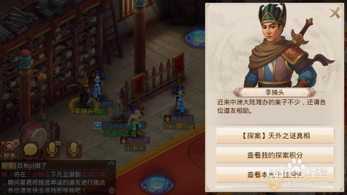 使命完当作,找到李捕头提交使命。没有主动寻找NPC按钮,所以注重李捕头的位置是在衙门。
