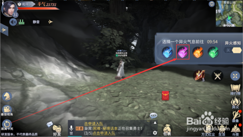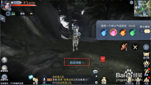 然后在选择你需要打猎的异火气息,一共有蓝、粉、红、绿四种。这里我选择粉红的异火气息。之后他就会主动寻路到有异火的处所。如图所示。