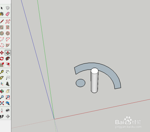 画出一个圆,快捷键为C,推拉出一个圆柱体。快捷键为P。