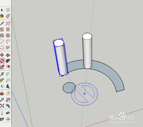 先选中整个圆柱体,添加组件,然后选中圆柱体组件,找到圆弧的中间,然后利用扭转东西,快捷键为Q,按住ctrl,输入角度或者鼠标移动节制放到恰当的位置就可以了。