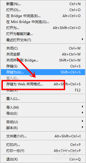 在呈现的菜单列表中选择存储为web所用格局;