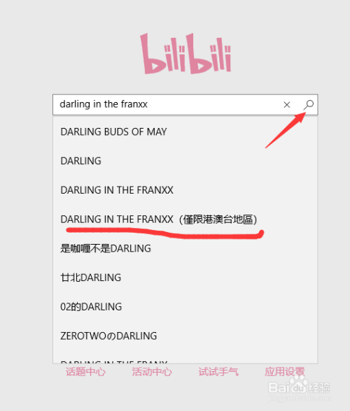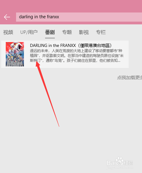 在页面搜索框输入你想看的动漫名字,好比我输入动漫【darling in the franxx】,点击搜刮