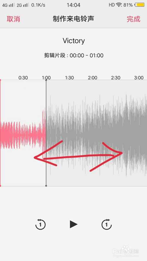 选择一项后,我们进入了歌曲的编纂窗口,红色部门就是铃声部门,你可以选择你喜好的阿谁时候段进行编纂。