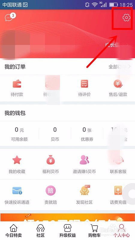 在打开的贝店应用首页中选择小我中间板块;