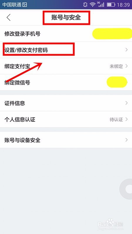 顿时页面打开账号与平安设置页,我们选择设置/点窜付出密码;