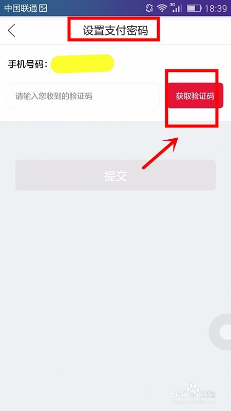 接着,在设置付出密码页面中点击获取验证码选项;
