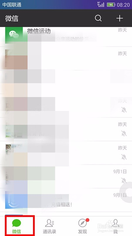 在手机上打开微信并登录小我微信账号,我们可以看到打开的微信首页;