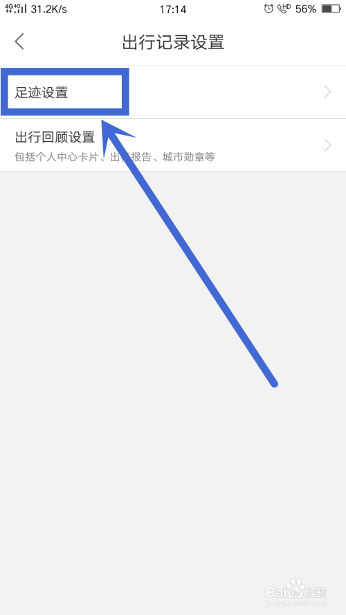 在出行记实设置中,点击进入萍踪设置,如图所示
