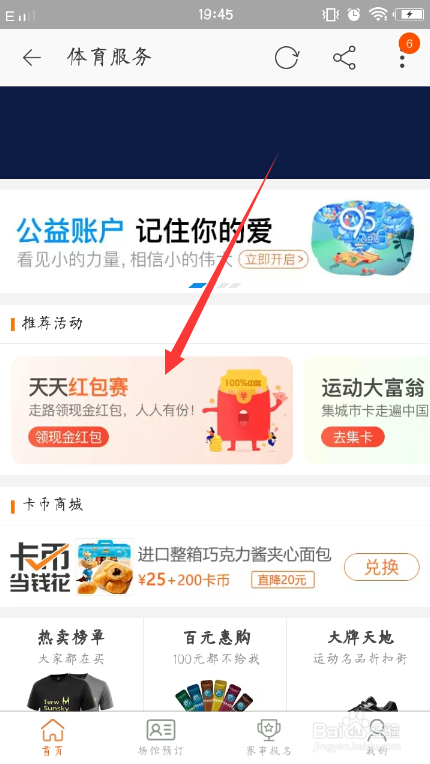 淘宝阿里体育有个红包赛,天天报名付出两元,第二天起头角逐,一全国来步数达到5000就是完当作使命。之前打开我的页面就可以看到红包赛,可是今天俄然不见了,应该在哪里找到进口?