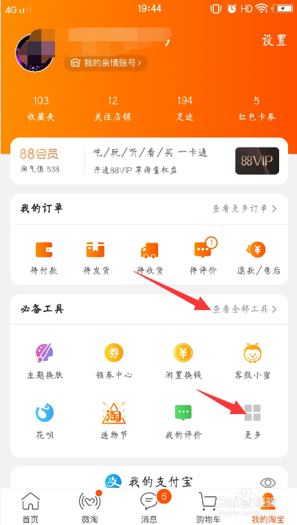 点击右下角【我的淘宝】,进入小我本家儿页。