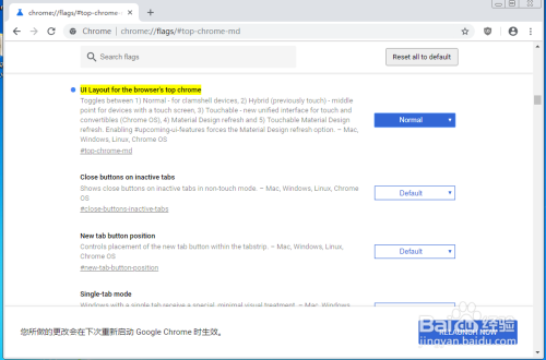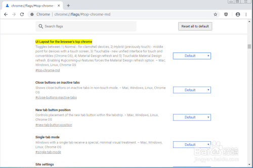 首先我们打开浏览器在地址栏输入chrome://flags/#top-chrome-md