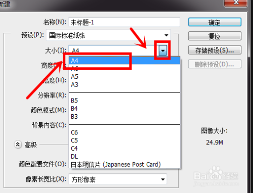 我们在该编纂框中点击预设中的标的目的下箭头,在呈现的选项中选择国际尺度纸张;