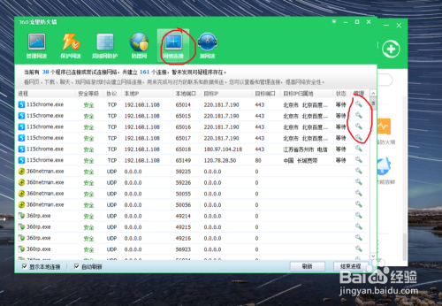 收集毗连设置。点击收集毗连,可以对任何软件应用进行收集毗连办理设置。