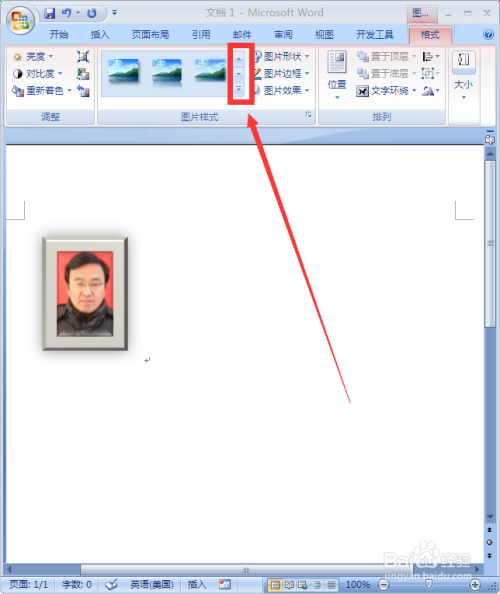 在word菜单栏中有一个“图片样式”,有各类样式的图片格局,把鼠标放在格局上,就可以实实际时结果预览。