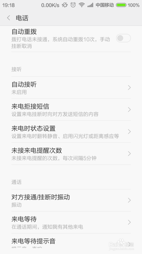 进入德律风设置界面今后,将应用界面标的目的下拉,然后找到“来电时状况设置”按钮,进入该设置菜单。