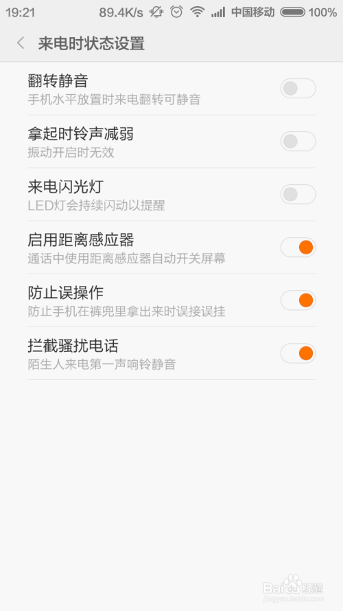 别的,保举大师在设置来电LED闪光灯的同时,将下方的“防止误操作”按钮开关也打开,如许以防我们从裤兜里拿出手机的时辰误接听了德律风。