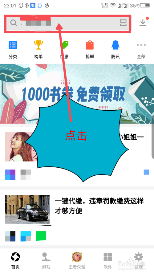 在软件首页界面,点击顶部的搜索框。如图所示